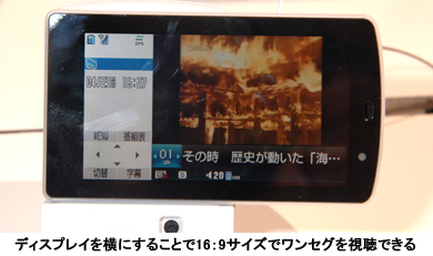 「F904i」は、今回発表した夏モデルで唯一ワンセグに対応。縦横比が16:9で、横320×縦432ドットの3.1インチワイドQVGA液晶を搭載し、ディスプレイを横方向に倒すことで、フルサイズでワンセグを視聴することができる。