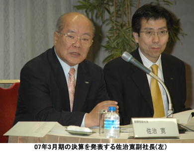 一方、07年度の液晶テレビの需要は全世界で7100万台と予測。うち900万台の販売目標を掲げ、米国を中心に欧州やアジアで大型モデルの販売を拡大することで、38.5%増の8500億円の売り上げを見込む。販売比率は国内が326万台、海外が574万台になる見通し。