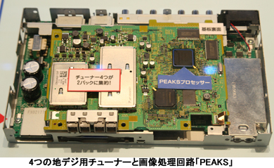 ディスプレイには、7インチで115万画素のワイドVGA液晶を採用。松下の薄型テレビ「VIERA(ビエラ)」の高画質画像処理回路「PEAKS(ピークス)」を搭載しており、フルデジタル処理で映像を高画質で表示する。