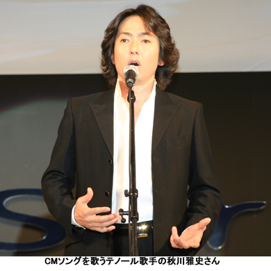 発表会にはCMソングを歌うテノール歌手の秋川雅史さんも登場。会場でCMソングを披露した。また、イタリア語で「道」を意味する商品名のストラーダに触れ、「ストラーダは響きの美しい言葉。イタリア語は世界で一番言葉の響きが美しく、ストラーダも全世界に広がっていけばいいと思う」とエールを送った。