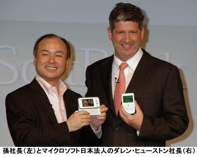 発表会にはマイクロソフト日本法人のダレン・ヒューストン社長も登場。「Windows Mobile 6はセキュリティを強化しより使いやすくなった。ソフトバンクとともにWindows Mobileの普及を図っていく」と述べた。