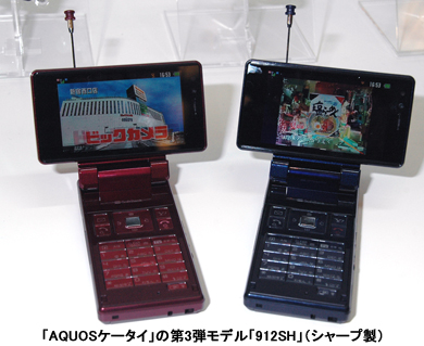 人気の高いシャープ製のワンセグ端末「AQUOSケータイ」の最新モデル「912SH」も投入する。3インチワイドVGA液晶を搭載しており、液晶画面を横90度に回転できる「サイクロイドスタイル」を採用。ワンセグを視聴しながら、ウェブ閲覧やメール操作もできる2画面表示機能を備えた。「3Gハイスピード」が利用できるほか、夏モデルでは唯一、GPSサービス「S!GPS ナビ」に対応した。