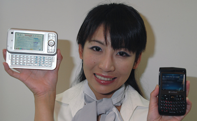 「スマートフォン」と呼ばれるPDA型の携帯電話も2機種発表した。Windows Mobile 6を搭載したHTC製の「X02HT」、東芝製の「X01T」を発売する。2機種ともにフルブラウザ利用時の定額制に対応。法人を中心に販売するが、PCとの連携を重視する個人もターゲットにする。