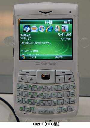 「X02HT」はストレートタイプ端末で、サイズは幅63×高さ114×厚さ13.9mm。パソコンと同初列のフルキーボード、ノートパソコンのタッチパッドのように、指でなぞって操作できる「JOGGR」機能を搭載した。マイクロソフトのExchange Serverと連携することで外出先からでも会社のメールを送受信することができる。