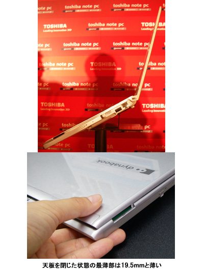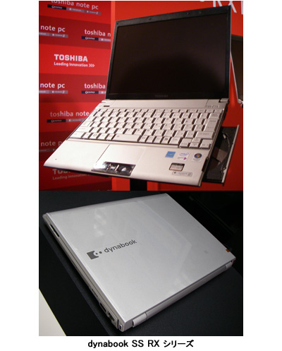 「dynabook SS RX1」は、「True Mobile」をコンセプトに「軽さ」「薄さ」「長時間駆動」を兼ね備えたモバイルノートPC。メイン基板の小型化や、薄さ7mmのDVDスーパーマルチドライブの採用などで、最薄部0.45mm厚の薄型・軽量ボディの実現に成功した。