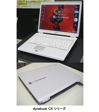 また同社は、13.3型ワイド液晶を搭載した個人向けノートPC「dynabook CX」の新モデル「CX/47C」「CX/45C」を6月下旬に発売する。従来モデルからきょう体を一新し、OSにWindows Vista Home Premiumを採用すると同時に、メモリを512MBから512MB2枚の1GBに増やした。指先でなぞるだけでログインできる「指紋センサー」も備える。