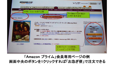 同社の通常会員の場合、注文額が1500円未満なら送料は有料。また、通常より早く配送する「お急ぎ便」を利用する際には1回あたり350円の追加料金を徴収している。米アマゾンの創業者、ジェフ・ベゾスCEOは発表会で「今回のサービス提供で我々に発生するコスト面での負担は少なくない。しかし長期的な視点に立った場合、会員の利用頻度が高まり、より多くの商品を購入してもらえるメリットがある。そういった意味で、今回のサービスは投資の意味合いが強い」と、新サービスの狙いを述べた。