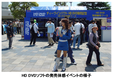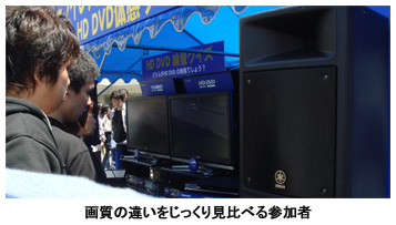 クイズは、従来のDVDとHD DVDの両映像を見比べて、高画質である方を当てるというもの。私も参加したが、明らかに画質も音質も違っているのが分かる簡単なものだ。クイズの参加者に感想を聞いてみたところ、ディープインパクトのレースの余韻も手伝ってか、画質の素晴らしさを興奮気味に話す競馬ファンが目立った。