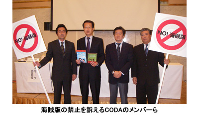 CODAは02年8月設立の民間組織。会員は日本音楽著作権協会(JASRAC)やコンピュータソフトウェア著作権協会(ACCS)などの20団体と、講談社、任天堂、マイクロソフトなどの22社。日本貿易振興機構(JETRO)に事務局を置く。日本のコンテンツ産業が海外で事業展開を図り、海外における海賊版対策を講じていくため、経済産業省と文化庁の呼びかけで組織された。