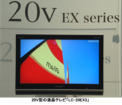同時に、20V型小型テレビ「LC-20EX3」も8月21日に発売すると発表。解像度が1366×768画素の「ASV液晶」をパネルに採用。HDMI端子を2系統、D4端子やPC入力端子なども備える。価格はオープンで、実勢価格11万円前後の見込み。