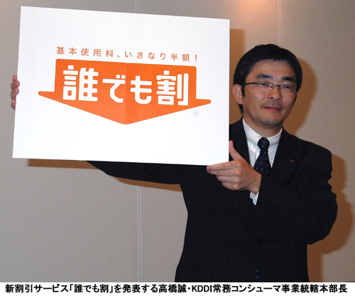 KDDIでは、「誰でも割」の導入で、今期200億円の減収を見込むが、「すでに発表している今期の決算には織り込み済み」(高橋常務)という。詳細は明かさなかったが、「長期利用者にメリットのあるサポートを考えている」とも述べた。