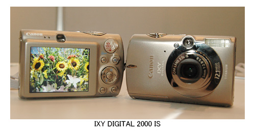 「IXY DIGITAL 2000 IS」は、従来機「1000」の後継機で、光学ズーム機能を3倍から3.7倍に向上。35ミリフィルムカメラ換算で36-133mmの光学3.7倍ズームレンズを搭載する。デザインも一新。ボディの素材には純チタンを使用し、連続曲面の「Curvature Design」を採用することで、高級感あるデザインに仕上げた。モニターは2.5型で約23万画素の「クリアライブ液晶」を備える。サイズは幅95.9×高さ59.9×奥行き27.6mm、重さは約165g。実勢価格は5万円前後の見込み。
