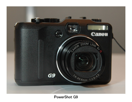 一方、「PowerShot G9」は、「PowerShot」シリーズのフラッグシップモデル。35ミリ換算で35-210mmの光学6倍ズームレンズを搭載。新たにCCDのオリジナルデータをそのまま保存できるRAWデータ記録に対応し、連続撮影も行える。また、RAWとJPEGのデータを同時に記録することも可能。モニターは3.0型で約23万画素の「クリアライブ液晶II」を採用した。サイズは幅106.4×高さ71.9×奥行き42.5mm、重さは約320g。実勢価格は6万円前後の見込み。