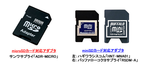 ●mini/microSDカードのアダプタはSDカード変換タイプが多い