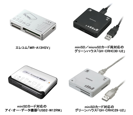 最新の携帯電話が採用する外部メモリは、miniSDカードからmicroSDカードに移行している。今後、他のモバイル機器にもmicroSDカードが採用されることで、ますますカードリーダーの需要は高まりそうだ。(BCN・井上真希子)