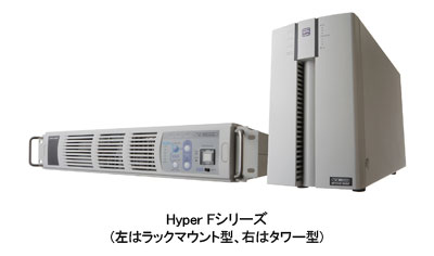 「Hyper Fシリーズ」は、小型オンラインUPS「Hyperシリーズ」に、気温マイナス10度からプラス50度までの環境で動作可能にした、常時インバータ給電方式のUPS。バッテリの保電保障時間は100%負荷の状態で約7分。