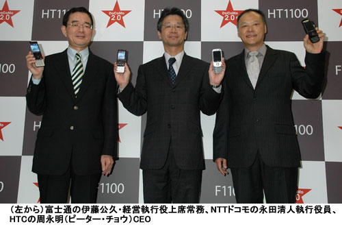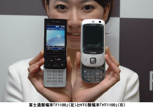 NTTドコモは8月30日、Windows Mobileを搭載したFOMAのスマートフォン「1100」シリーズを発表した。携帯電話のような使い勝手と薄さが特徴で、第1弾として台湾のHTC製端末「HT1100」と富士通製端末「F1100」を08年1-3月に発売する予定。法人ユーザーだけでなく、一般ユーザーにも販売することで、今後個人ユーザーの拡大が見込まれるスマートフォン市場でシェア獲得を狙う。