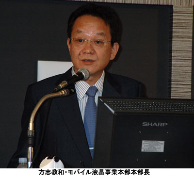 方志教和・モバイル液晶事業本部本部長は発表会で、自発光のため薄型化が可能と言われる有機ELと比較し、「一般に薄いと言われている有機ELでは難しい技術。有機ELにタッチパネルを付けた場合よりも今回の液晶の方が薄くなる」と自信を見せた。サイズ展開については「12.1型や10.4型を視野に入れているが、当面はもう少し小さいサイズで展開していきたい」と述べた。