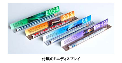 鉛筆のサイズは6.7×6.7×長さ176mmで、車両実物の約870分の1のスケール。さらに、立体面に車両の実物写真、型名、車両愛称の由来をプリントし、底面にレールイラストを描いたミニディスプレイも付属する。ミニディスプレイの長さは176mm、立体面は高さ20mm、レール面は幅20mmで、裏面には、車両の概要を解説するルビ付きの紹介文も載せた。