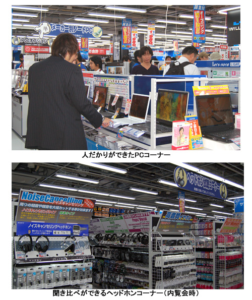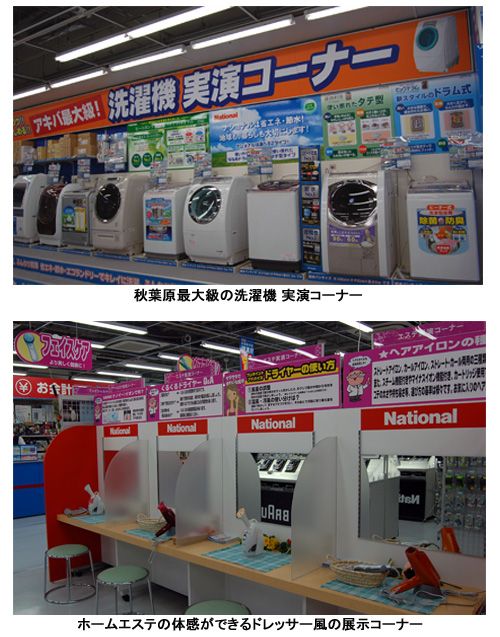 また、5階の同社初の生活家電コーナーでは、グループ会社のビックカメラの支援・指導を受けながら、ドアが開閉できるように冷蔵庫コーナーの通路を広めに取るなど、従来のソフマップにはない売り場作りを行った。5階には、洗濯機10台を並べた実演コーナーも設置。6階には大きな鏡を設置したドレッサー風の展示コーナーを設け、ドライヤーやホームエステ商品を体感できるようにした。