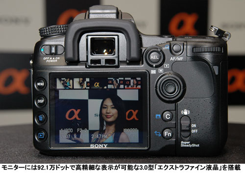 また、キヤノンの「EOS 40D」、ニコンの「D300」といった中級者向けのライバル機との競争については「2メーカーの機種にはない『手ブレ内蔵』、新開発の半導体を使った高い画質、テレビとのリンク機能を強調していくことでソニーの強みと特徴が出せる」と自信を見せた。