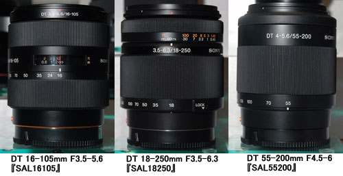 ソニーは9月6日、デジタル一眼レフカメラ「α(アルファ)」用の交換レンズを11月16日に発売すると発表した。いずれもズームレンズで、焦点距離が16-105mmの「DT 16-105mm F3.5-5.6『SAL16105』」、18-250mmの「DT 18-250mm F3.5-6.3『SAL18250』」、55-200mmの「DT 55-200mm F4.5-6『SAL55200』」の3本。