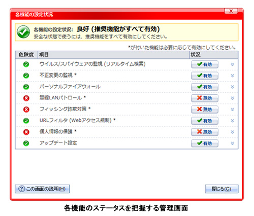 従来から提供している、偽サイトや不正なサイトのデータベースと照合して、不正サイトへのアクセスを防ぐURLフィルタリング技術と併用することで、さらに高度なセキュリティレベルを保てるという。05年から研究・開発してきた技術で、法人向け製品ではすでに導入していたが、個人でも使いやすいように改良して個人向け製品で初めて搭載した。