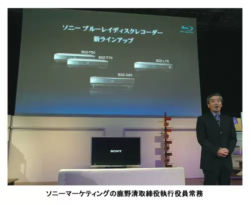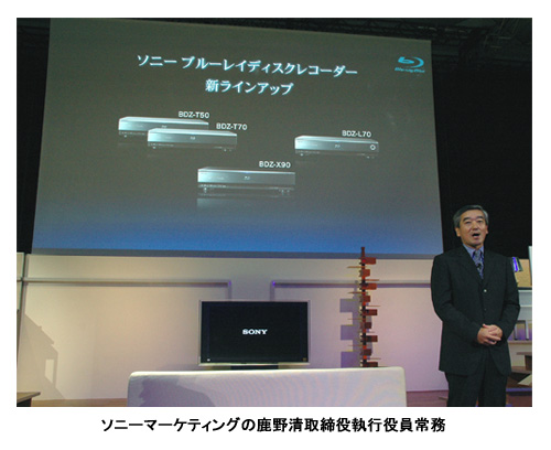 ソニーでは今回の製品を皮切りに、BDレコーダーの展開を加速する。発表会で、井原勝美・副社長は、「ソニーのレコーダーは、ブルーレイを軸足とした商品開発を行い、国内のレコーダーは全てブルーレイ対応モデルにしていく」と抱負を述べた。