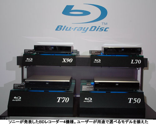 HDD容量が500GBの「BDZ-X90」、320GBの「BDZ-L70」「BDZ-T70」、250GBの「BDZ-T50」をラインアップした。「BDZ-X90」は高いクオリティの映像とサウンドでハイビジョンを楽しみたいユーザー、「BDZ-L70」はハイビジョンビデオカメラで撮影した映像を残したいユーザー、「BDZ-T70」「BDZ-T50」は手軽にハイビジョン番組を録画したいユーザーをターゲットに販売する。