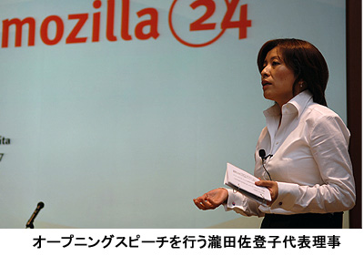 慶応大学三田キャンパスで開会の挨拶をした実行委員長の瀧田代表理事は冒頭で、ブラウザとインターネットの歴史を振り返りながら「オープンソースはものづくりの原点」と話し「いよいよmozilla 24、スタートしてしまいました」と宣言、24時間イベントの幕を開けた。