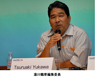 なぜオープンソースの技術者がプログラムを開発するか、という学生パネラーの質問に答えて時事通信社の湯川鶴章編集委員は「1社が全てを支配するような状態が不健全だと感じて共同体で別のものをつくる」という反発や「表現したい」という欲求、さらに「他の人々とつながりたい」という欲求によるものではないかと話した。