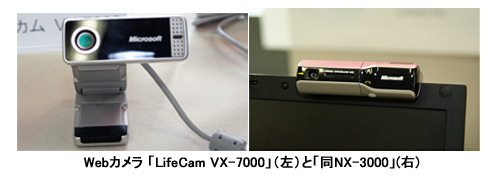 Webカメラは、200万画素のCMOSセンサーを搭載した「LifeCam VX-7000」と、30万画素のCMOSセンサーを搭載した「同 NX-3000」の2モデル。両モデルともにノイズキャンセル機能付きマイクを内蔵。メッセンジャーソフト「Windows Live メッセンジャー」に適した機能も備えており、ソフトで一覧表示するオンラインユーザーの中から通話したい相手をクリックするだけで、映像通話を始めることができる「Windows Live Call ボタン」なども装備した。