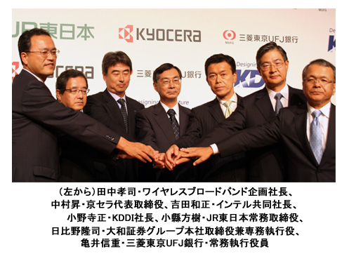 企画会社の資本金は8億5000万円。KDDIが32.8%、インテル キャピタルとJR東日本、京セラが17.65%、大和證券グループ本社が9.8%、三菱東京UFJ銀行は5%を出資する。社長にはKDDIの田中孝司・常務執行役員が就く。