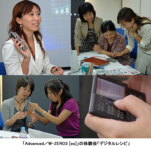 ハッピーコム(戸田江里子社長)とウィルコム(喜久川政樹社長)は9月26日、ウィルコムのシャープ製スマートフォン「Advanced/W-ZERO3 [es] WSO11SH」の女性向け体験会「デジタルレシピ」を都内で開催した。ハッピーコムのデジタル製品に関する女性インストラクター「ナビゲーター」を対象としたもので、参加者は「Advanced/W-ZERO3 [es]」を手にとって存分に機能を試した。