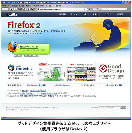 Mozilla Japan、無償WebブラウザのFirefox 2がグッドデザイン賞受賞
