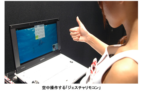 東芝では、液晶テレビ「REGZA」シリーズや携帯オーディオプレーヤー「gigabeat」シリーズなどを展示。燃料電池や有機ELを使用した携帯オーディオも公開した。また、PCに搭載するカメラを使用して空中で手を動かして映像を再生・停止、音量を操作する「バーチャルリモコン」技術を体験できるコーナーも設けた。