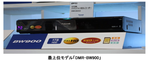 「ブルーレイDIGA」は、HDD容量1TBの最上位モデル「DMR-BW900」、500GBの「DMR-BW800」、250GBの「DMR-BW700」、「ハイビジョンDIGA」では、HDD容量500GBの「DMR-XW300」、250GBの「DMR-XW100」、250GBのHDDを搭載したVHS一体型「DMR-XW200V」をラインアップする。