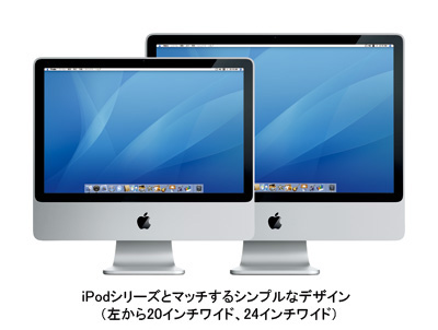 新しい「iMac」の最大の魅力は、アルミを使用したシンプルなデザインと、全モデル20インチ超の大画面、デュアルコアCPUの「Core 2 Duo」搭載で15万円台からというコストパフォーマンスの高さ。iMacの発売と同時にバージョンアップした、ビデオや写真の編集、作曲などが簡単にできる独自の統合ソフト「iLife '08」や、アルミ製の極薄キーボードもウリの一つだ。現行のラインアップは液晶画面の大きさやCPUが異なる3モデルで、一番人気は、2.0GHzのCore 2 Duoと20インチワイド液晶を搭載し、最も安いエントリーモデル「MA876J/A」。07年9月の「BCNランキング」デスクトップPC機種別ランキングでは、富士通やNECの9月発売の新製品を抑え、シェア4%で1位を獲得した。
