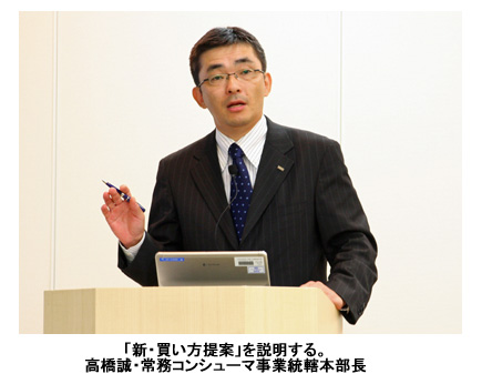 会見で、高橋誠・常務コンシューマ事業統轄本部長は「フルサポートコース」について、「月々の利用金額が1万4000円ぐらいのユーザーであれば、12か月でフルサポート解除料とほぼ同等のポイントが得られる。そのため、サービスをより使う人であれば、短期間でも今までと同様に端末を買い換えられる」と説明した。