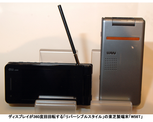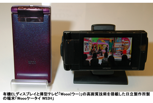 「W56T」「W54S」「W53H」は、KDDIが韓国のサムソンSDIと共同開発した2.8インチの有機ELディスプレイを採用し、高画質化を図った。有機ELは、コントラストが高く、視野角による変化が少ないため、高画質のワンセグ視聴に向いているという。