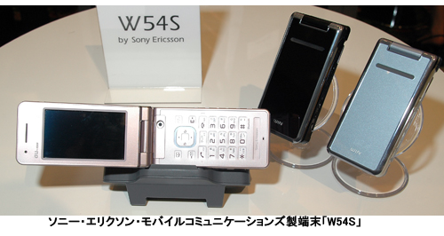 「W54S」は、光沢のあるフレームと上質なツヤ感が特徴の折りたたみ型端末。AVプロファイルに対応したBluetooth機能を装備。対応のレシーバーを使えば、ワイヤレスで高音質な音楽を楽しむことができる。有効324万画素のカメラと800MBの内蔵メモリを搭載する。サイズは、幅50×高さ106×厚さ19.1mmで、重さは約145g。カラーは、フランボワーズレッド、ベルベットブラック、アクアブルー。
