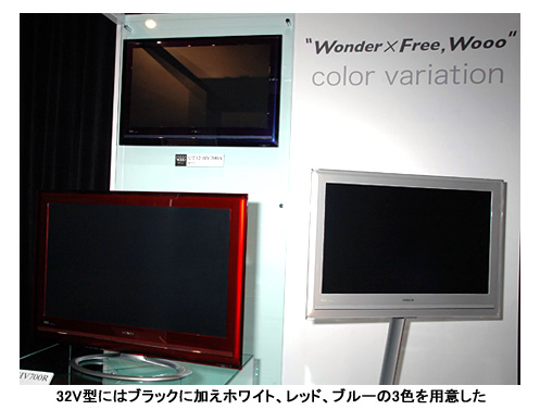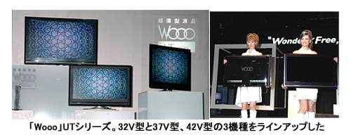 ラインアップは、32V型「UT32-HV700」、1920×1080画素のフルハイビジョンに対応した37V型「UT37-XV700」、同42V型「UT42‐XV700」の3機種。いずれも「Wooo ステーション」とテレビスタンドが付属する。また、32V型のみブラック、ホワイト、レッド、ブルーの4色のカラーバリエーションモデルを揃えた。レッドとブルーは限定生産。