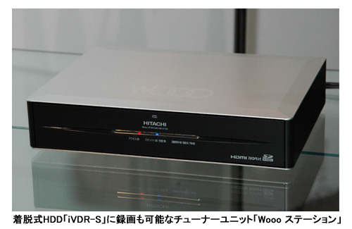 「Wooo ステーション」には、地上アナログと地上・BS・110度CSデジタルチューナーを内蔵し、別売りの着脱式HDD「iVDR-S」に対応した「iVポケット」とSD/MMCメモリカードスロットを搭載。「iVDR-S」にテレビ番組を録画することもできる。HDMI入力端子3基をはじめ、D4/コンポーネント入力端子、LAN端子なども備え、HDD-DVDレコーダーなどの周辺機器の接続を容易にした。本体サイズは幅29.7×高さ6.6×奥行き22.2cm、重さは2.8kg。