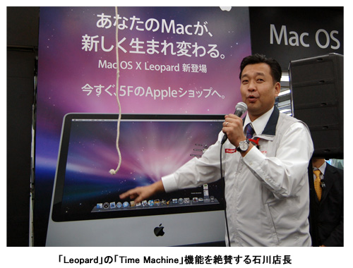 イベント終了後、石川店長は「最近Macの人気が高まっており、9月のBCNランキングデータでは、デスクトップPC部門で1位になった。今年の年末商戦はVistaと『Leopard』の2つの新OSのおかげで、盛り上がると思う」とコメントした。