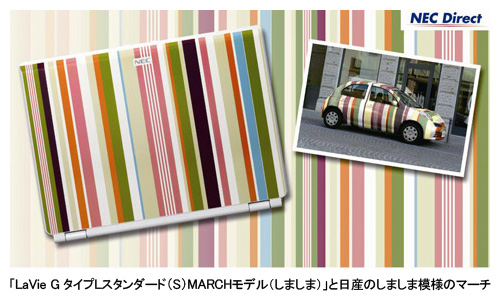 NEC、日産とのコラボPC第2弾、ストライプ柄の「マーチ」モデル