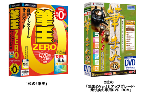 2位の「筆まめVer.18 アップグレード・乗り換え専用DVD-ROM」は、はがき作成ソフト初心者向けの機能を強化。キーボード操作が不慣れな人でもマウス操作で住所入力ができる「ソフトウェアキーボード」や、写真の明るさ補正などが簡単にできる「フォトレタッチ」機能を搭載する。また無料サポートも充実。「年末年始特別サポート期間」を設け、メールや電話、FAXで対応。11月1日から12月31日までは営業時間を20時まで延長するほか、08年1月1日から14日も17時まで対応する「筆まめ」は、DVDとCDの2つのメディアで販売されており、それぞれにアップグレード・乗り換え版がある。ラインアップは合計4製品で、すべてトップ10にランクインしているが、低価格のアップグレード・乗り換え版が上位に入った。
