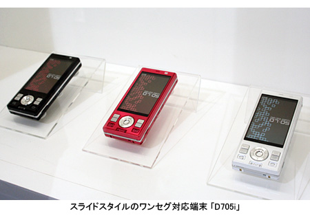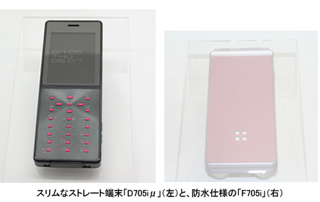 このうち、「D705i」「P705i」「SH705i」の3機種は、ワンセグの視聴と録画に対応。「L705iX」と「N705i」はワンセグの視聴のみ対応する。また、「N705iμ」「PROSOLID μ」は折りたたみタイプの第3世代携帯電話で世界最薄の9.8mm、「P705i」はワンセグ対応の携帯電話で世界最薄の12.8mmのスリムボディに仕上げた。