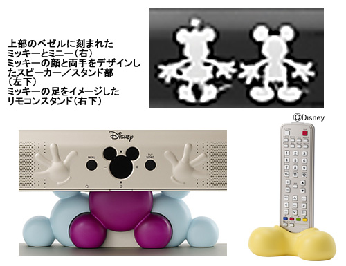 ユニデン、リモコン台やスタンド部分までミッキー尽くしの20V型液晶テレビ