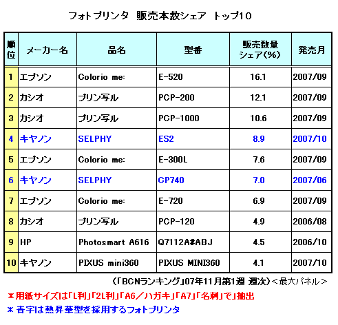 キヤノンとエプソン互角で激突、07年プリンタ商戦緒戦でリードするのは?
