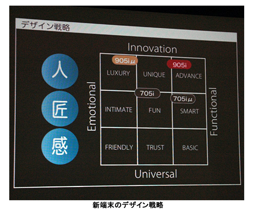 佐藤敏明・クリエイティブスタジオチーフクリエイティブディレクターは「NECは日本の携帯電話のパイオニアという自負があるが、それに甘んじていてはダメだ」と話す一方、「これからのケータイは機種のコンセプトをユーザーにアピールすることが重要。『N905i』は『ビジネスパーソンがインターネットやワンセグで情報を快適に収集できる端末』、『N905iμ』では『女性がパーティなどに持って行けるような高級感のある端末』として開発した」と述べた。